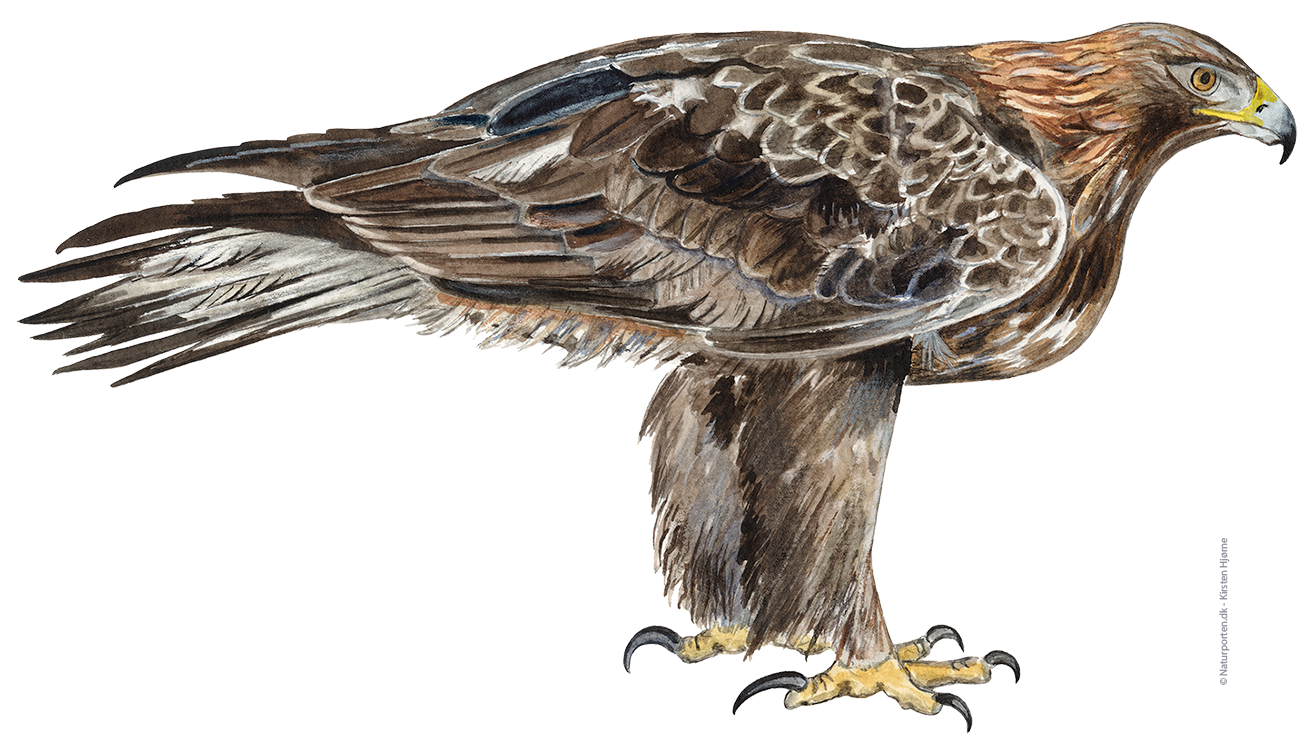 Kongeørnen er overvejende mørkebrun og spraglet med lysere, grålige og gullige felter på fjerdragten. Issen og nakken er gylden, mens det yderste af halen er sort. Unge kongeørne har hvid hale og trekantede hvide felter i vingerne. Kongeørnen er den næststørste rovfugl i Danmark - kun overgået af havørnen. Hunnen er større end hannen.