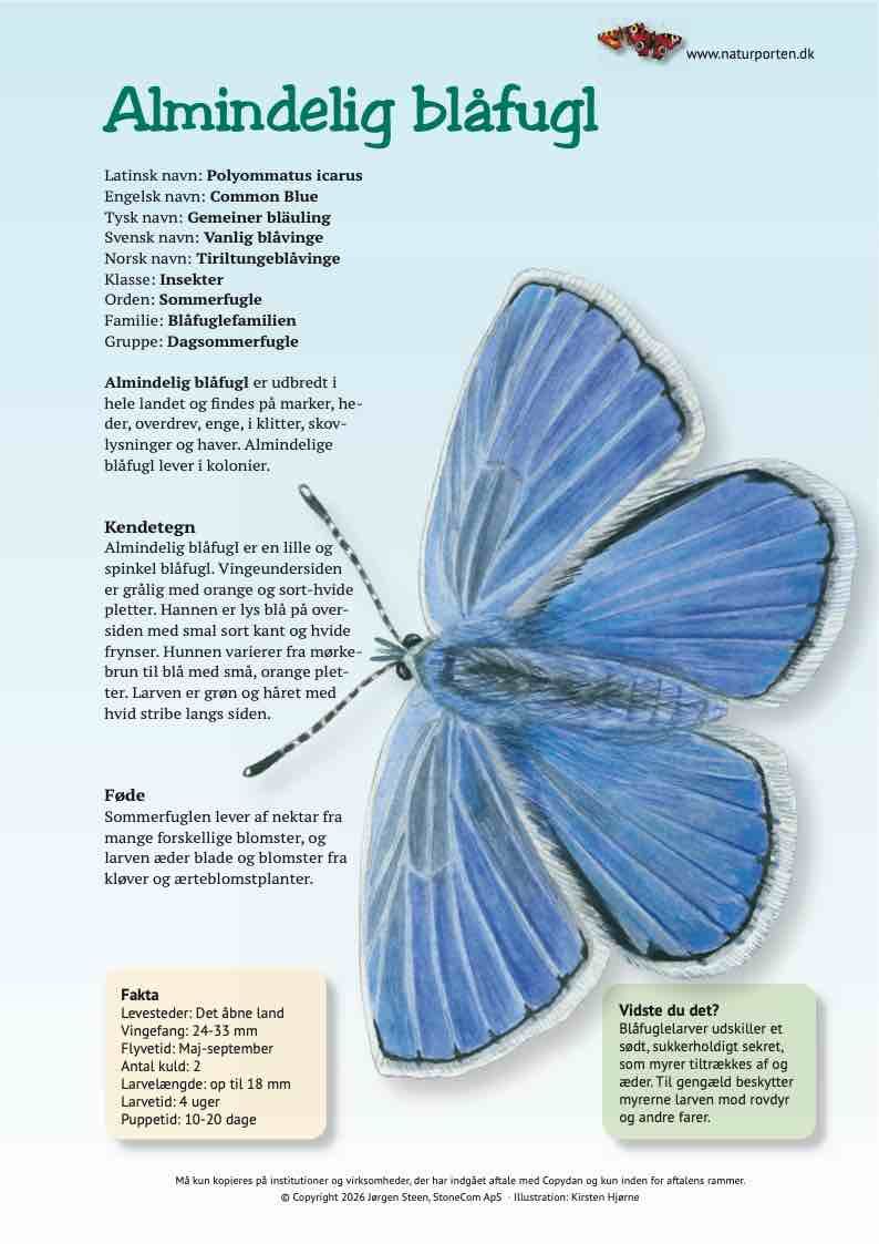 Almindelig blåfugl er udbredt i hele landet og findes på marker, heder, overdrev, enge, i klitter, skovlysninger og haver. Almindelige blåfugl lever i kolonier.