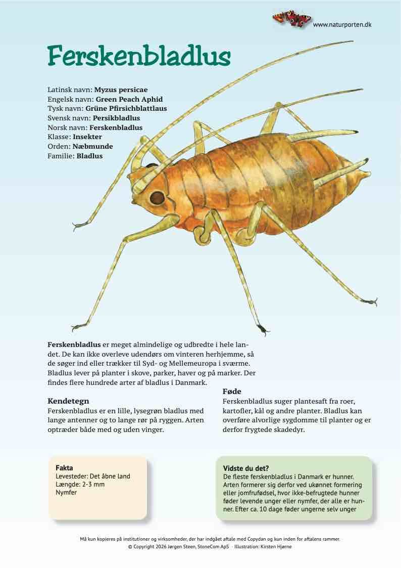 Ferskenbladlus suger plantesaft fra roer, kartofler, kål og andre planter. Bladlus kan overføre alvorlige sygdomme til planter og er derfor frygtede skadedyr