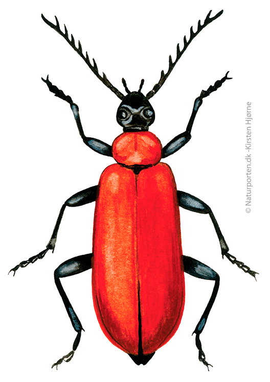 Kardinalbillen kendes især på sine flot farvede dækvinger, der er blevet sammenlignet med de katolske kardinalerns røde kappe. Billens ben, hovede og dens savtakkede antenner er sorte.