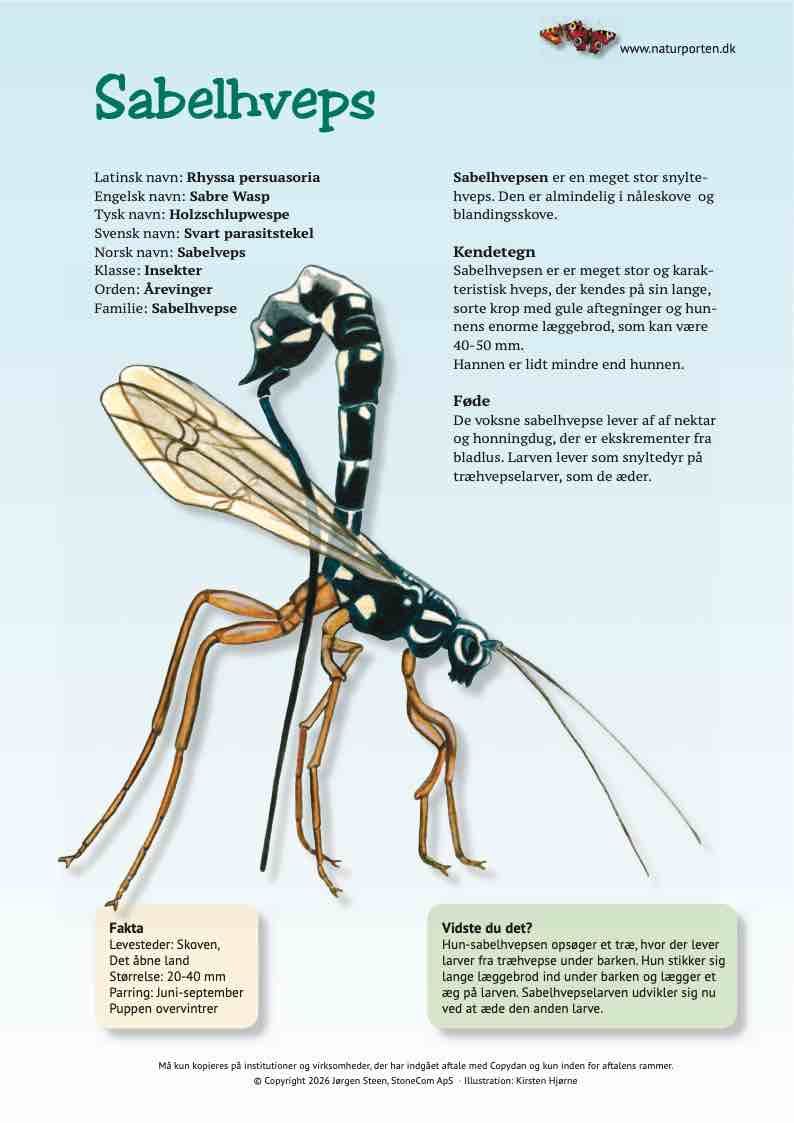 Sabelhvepsen er en meget stor snyltehveps. Den er almindelig i nåleskove og blandingsskove.