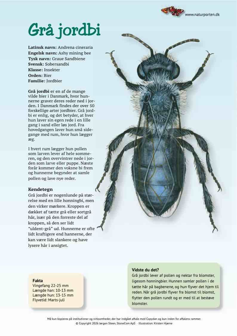 Sort jordbi er en mellemstor jordbi, som kan ligne en lille honningbi, men den er mørkere og har tætte grå eller sorte hår på den øverste del af kroppen.