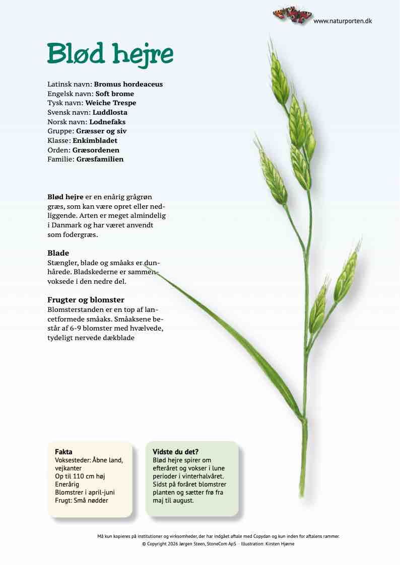 Blød hejre er en enårig grågrøn græs, som kan være opret eller nedliggende. Arten er meget almindelig i Danmark og har været anvendt som fodergræs.