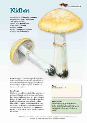Klidhat er en middelstor kødfuld svamp med en gulbrun til brunlig hat. Overfladen er ofte rynket i kanten og kan sprække op i tørre perioder. Hatten bliver typisk 5–12 cm bred, først er den hvælvet, men senere mere udbredt med en lille pukkel i midten. Lamellerne er først lyse, men farves med alderen rustbrune af sporerne. Stokken er relativt kraftig, let kølleformet og hvidlig til beige. Arten har en tydelig ring midt på stokken.