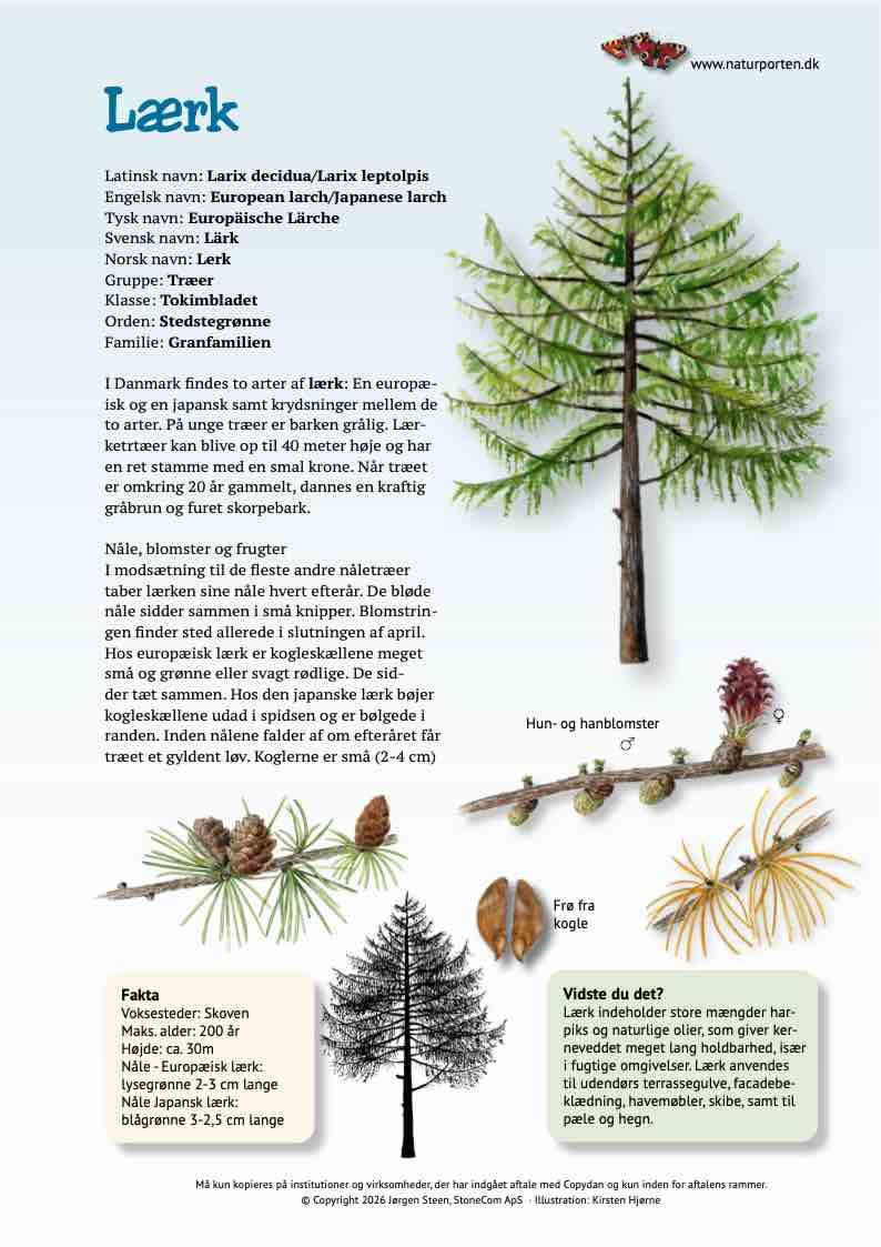 - Nåle - Europæisk lærk: lysegrønne 2-3 cm lange