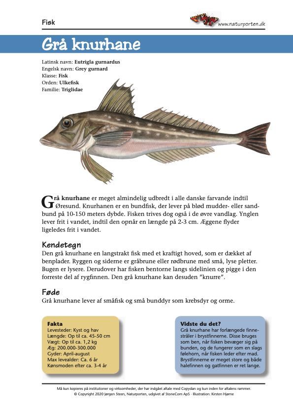 Grå knurhane er meget almindelig udbredt i alle danske farvande indtil Øresund. Knurhanen er en bundfisk, der lever på blød mudder- eller sandbund på 10-150 meters dybde. Fisken trives dog også i de øvre vandlag. Ynglen lever frit i vandet, indtil den opnår en længde på 2-3 cm. Æggene flyder ligeledes frit i vandet.