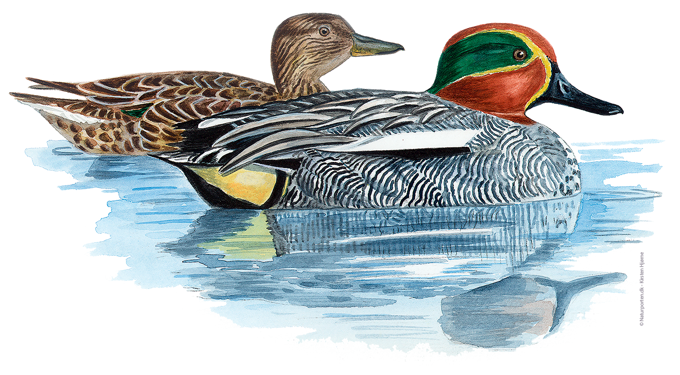 Hannen har en grå fjerdragt og et rustbrunt hoved med en metalgrøn stribe gennem øjet med gul indramning. Gumpen er gul. Hunnen har en gråbrun fjerdragt. Begge køn har et grønt og sort vingespejl. Krikanden er den mindste and i Danmark.