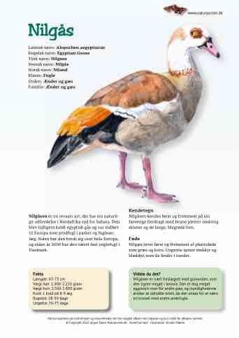 Nilgåsen er en såkaldt invasiv art, der har sin naturlige udbredelse i Nordafrika syd for Sahara. Den blev tidligere kaldt egyptisk gås og var indført til Europa som prydfugl i parker og fugleanlæg. Siden har den bredt sig over hele Europa, og siden år 2000 har den været fast ynglefugl i Danmark.