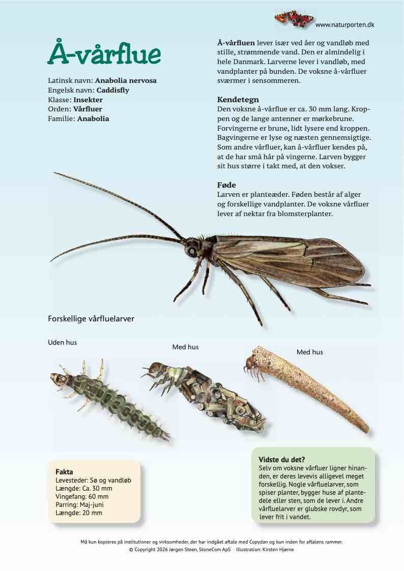 Selv om voksne vårfluer ligner hinanden, er deres levevis alligevel meget forskellig. Nogle vårfluelarver, som spiser planter, bygger huse af plantedele eller sten, som de lever i. Andre vårfluelarver er glubske rovdyr, som lever frit i vandet.