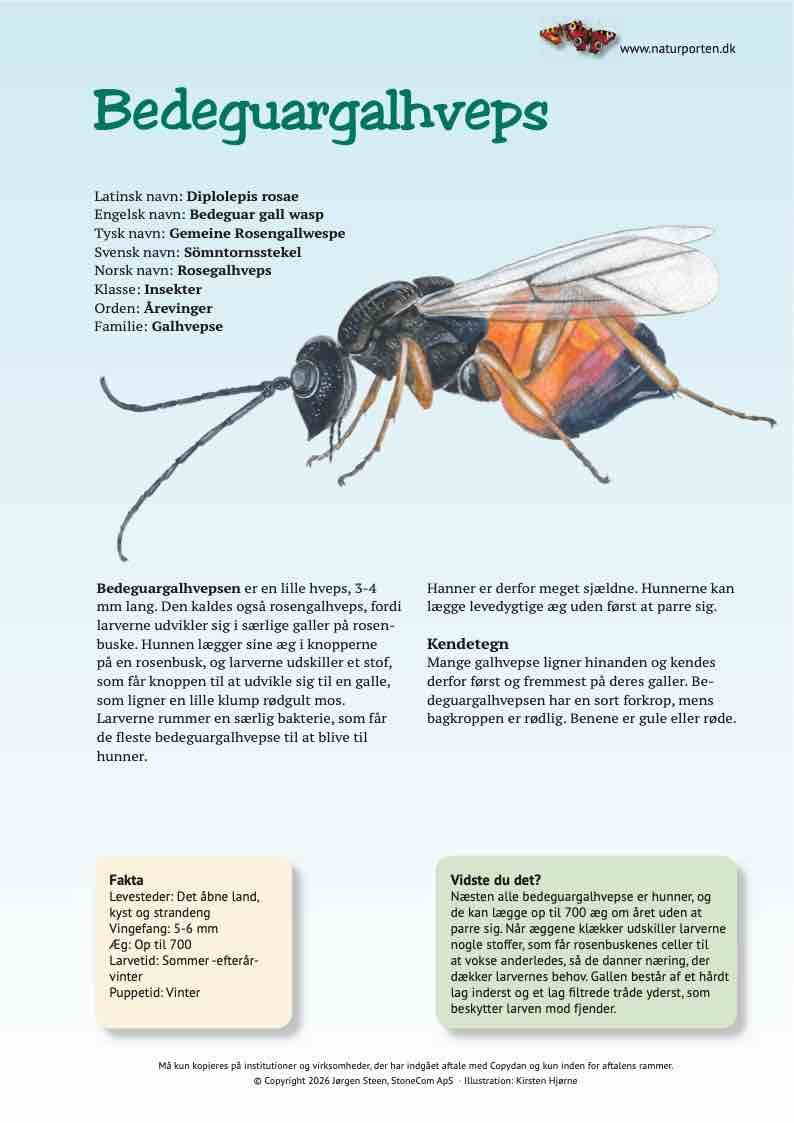 Bedeguargalhvepsen er en lille hveps 3-4 mm lang. Den kaldes også rosengalhveps, fordi larverne udvikler sig i særlige galler på rosenbuske. Hunnen lægger sine æg i knopperne på en rosenbusk, og larverne udskiller et stof, som får knoppen til at udvikle sig til en galle, som ligner en lille klump rødgult mos.