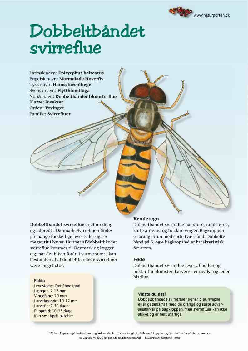 Dobbeltbåndet svirreflue er almindelig og udbredt overalt i landet. Svirrefluen findes på mange forskellige levesteder og ses meget tit i haver. Hunner af dobbeltbåndet svirreflue kommer til Danmark, når det bliver forår, og lægger æg. I varme somre kan der være milliarder af dobbeltbåndet svirrefluer herhjemme.