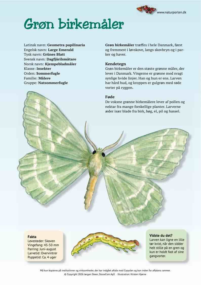 Grøn birkemåler er den støste grønne måler, der lever i Danmark. Vingerne er grønne med svagt synlige hvide linjer. Han og hun er ens. Larven har hård hud, og kroppen er gulgrøn med røde vorter på ryggen.