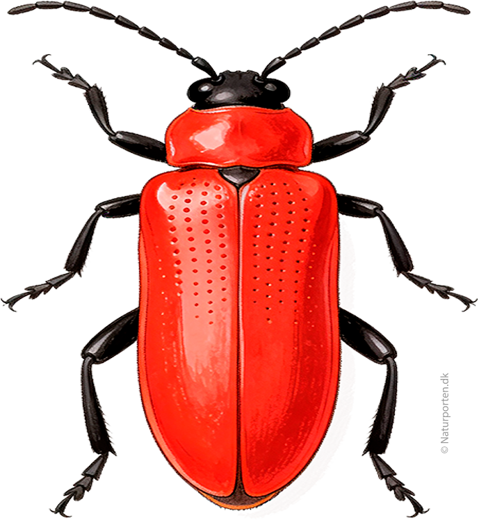 Latinsk navn: Lilioceris lilliEngelsk navn: Lily leaf beatleTysk navn: LilienhähnchenSvensk navn: LiljebaggeNorsk navn: LiljebilleKlasse: InsekterOrden: BillerFamilie: Bladbiller