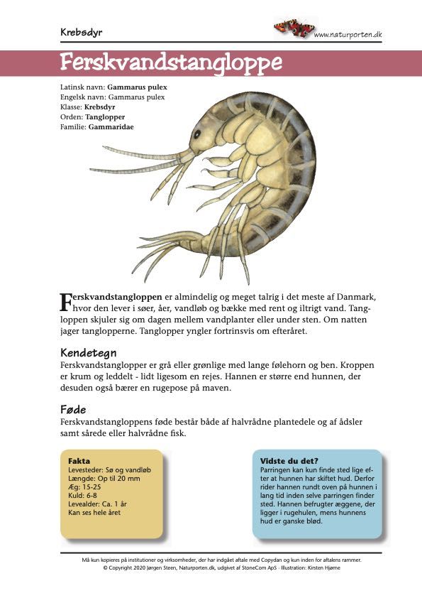 Ferskvandstangloppen er almindelig og meget talrig i det meste af Danmark, hvor den lever i søer, åer, vandløb og bække med rent og iltrigt vand. Tangloppen skjuler sig om dagen mellem vandplanter eller under sten. Om natten jager tanglopperne. Tanglopper yngler fortrinsvis om efteråret.
