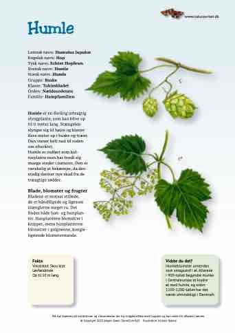 Humle er en flerårig urteagtig slyngplante, som kan blive op til ti meter lang. Stængelen slynger sig til højre og klatrer flere meter op i buske og træer. Den visner helt ned til roden om efteråret. Humle er indført som kulturplante men har bredt sig mange steder i naturen. Den er vanskelig at bekæmpe, da den stadig danner nye skud fra de træagtige rødder.