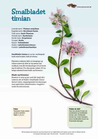 Man kan kende forskel på smalbladet og bredbladet timian, idet smalbladet timian har runde stængler, mens bredbladet timian har firkantede stængler.