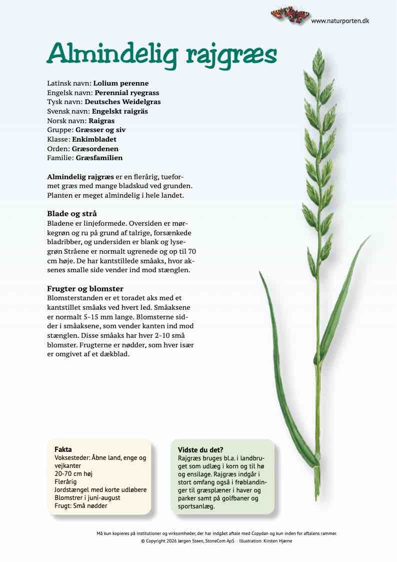 Almindelig rajgræs er en flerårig, tueformet græs med mange bladskud ved grunden. Planten er meget almindelig i hele landet.