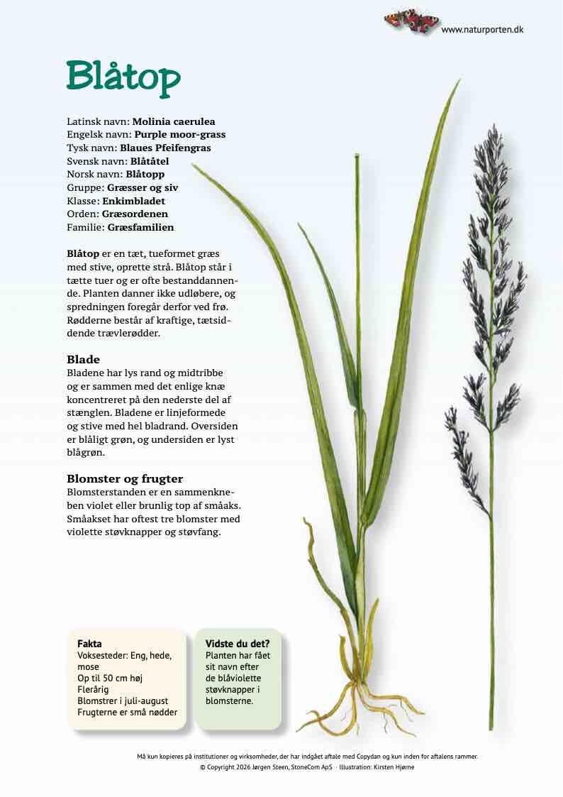 Blåtop er en tæt, tueformet græs med stive, oprette strå. Blåtop står i tætte tuer og er ofte bestanddannende. Planten danner ikke udløbere, og spredningen foregår derfor ved frø. Rødderne består af kraftige, tætsiddende trævlerødder.