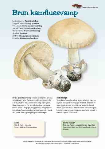 Brun kamfluesvamp adskiller sig fra giftige fluesvampe især ved den manglende ring på stokken