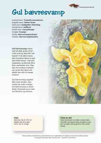 Gul bævresvamp vokser især på døde grene af løvtræer som eg, bøg eller ask, typisk 3-4 år efter træets død. Svampen ligner en gul, løst foldet masse - lidt som vingummi, og den kan blive flere centimeter stor. I fugtigt vejr svulmer svampen op, og når den tørrer ud, skifter den ofte til orange nuancer.