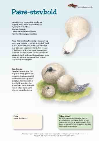 Pære-Støvbold er almindelig i Danmark og anses som spiselig så længe den er helt hvid indeni. Pære-Støvbold er ofte pæreformet, men kan også være mere rund. Nye svanpe er dækket af små hvide pigge, der normalt falder af, når de modner. Farven varierer fra næsten hvid til gulbrun. Den midterste pore åbner sig når svampen er moden og sporene sprede med vinden.