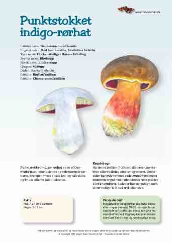 Punktstokket indigorørhat er en af Danmarks mest iøjnefaldende og velsmagende rørhatte. Svampen trives i både løv- og nåleskove og findes ofte fra juli til oktober.