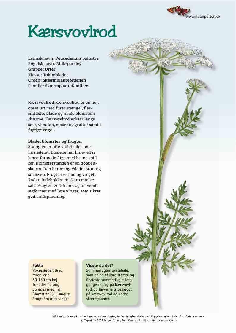 Sommerfuglen svalehale, som en en af Danmarks største sommerfugle, lægger gerne æg på kærsvovlrod, og larverne trives godt på kærsvovlrod og andre skærmplanter.